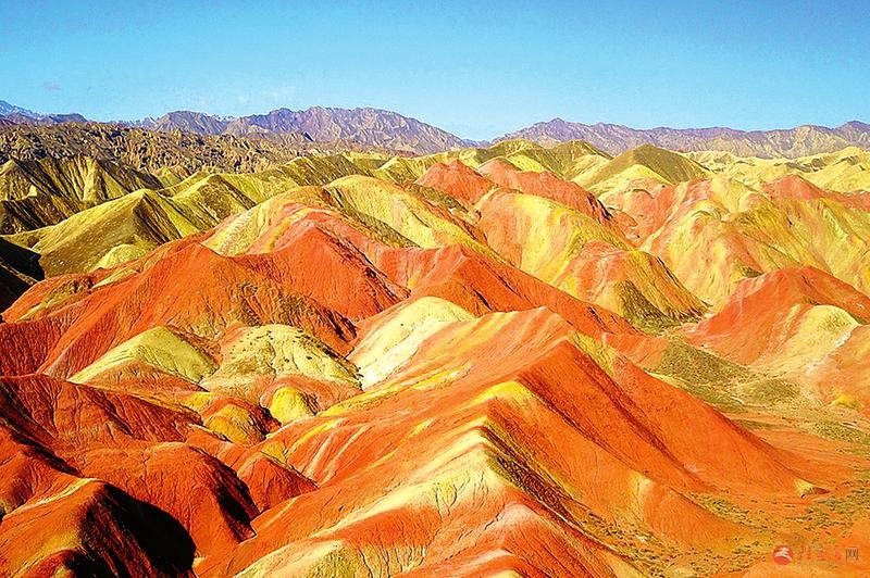 暖春4月, 甘肃张掖丹霞国家地质公园七彩丹霞景区迎来为数不多的降雨天气。雨后, 七彩丹霞在阳光的照耀下色彩鲜艳、 格外壮美。新华社发