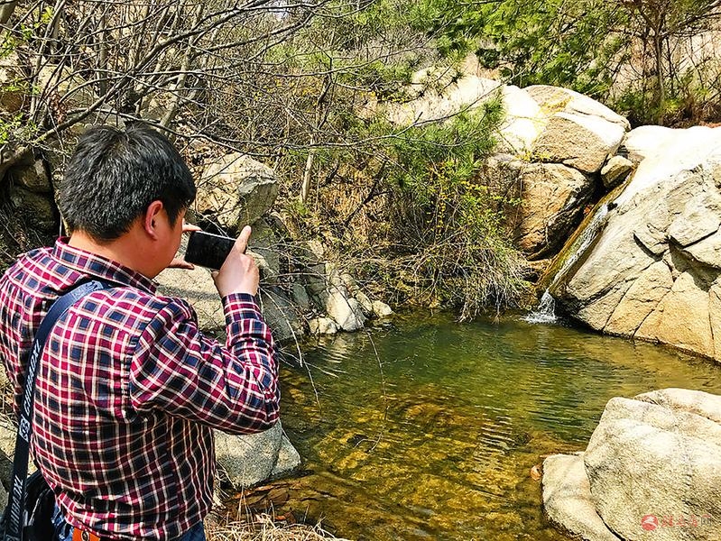 记者一行沿着石屋沟探寻这条溪流的源头。一路上水流阵阵,水质清澈见底,岸边各种野花盛开,有时候还能看到快速扭动身体的蜥蜴。源头还有一个水潭和瀑布。这条溪流的源头是一片遮天蔽日的松林,地上落满松针,阳光透过树冠落在地上映射出点点光斑。踩在松针上感觉软绵绵的,间或有一两只喜鹊从头顶飞过。