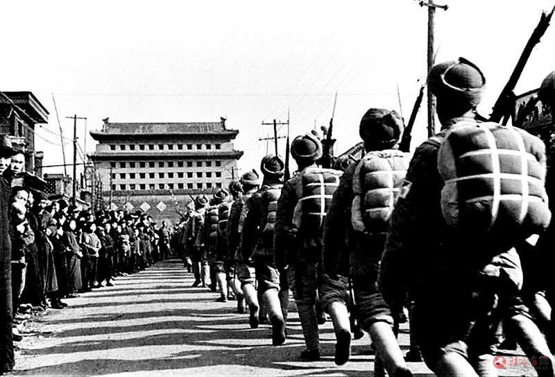 1949年1月31日, 北平和平解放。人民解放军开入北平城时, 受到北平人民夹道欢迎。 (资料照片)
