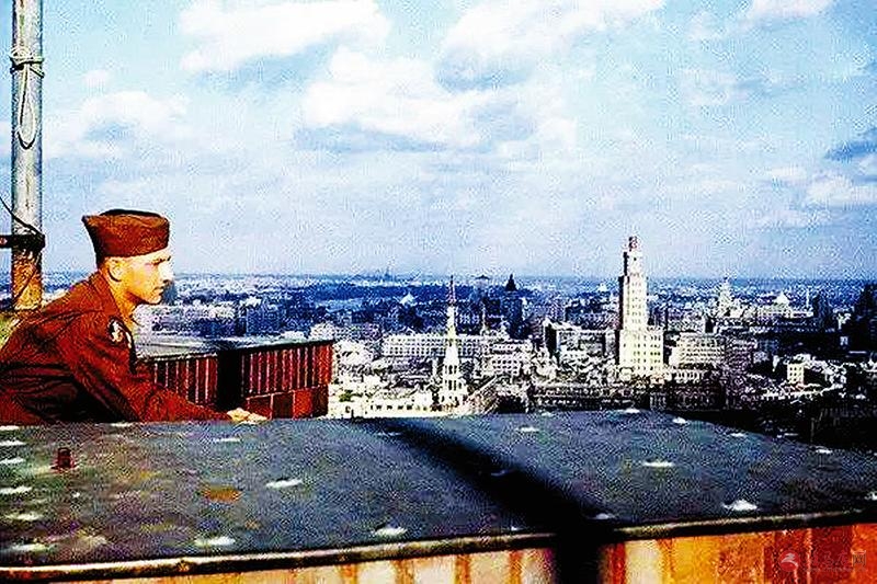 1945年, 上海, 飞虎队的科吉斯中士在国际饭店楼顶眺望上海的城市面貌。艾伦 · 拉森/摄