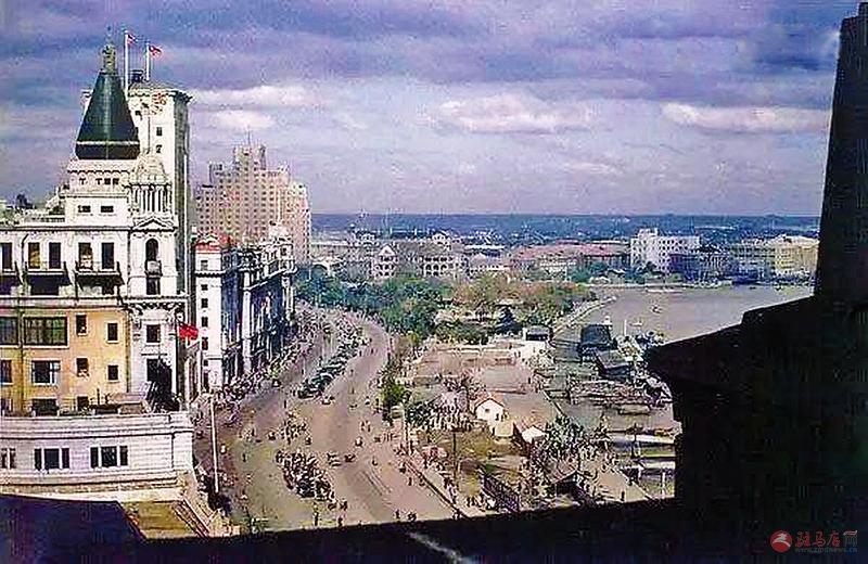 1945年, 上海, 摄影师从宾馆阳台看到的外滩景象。 艾伦 · 拉森/摄