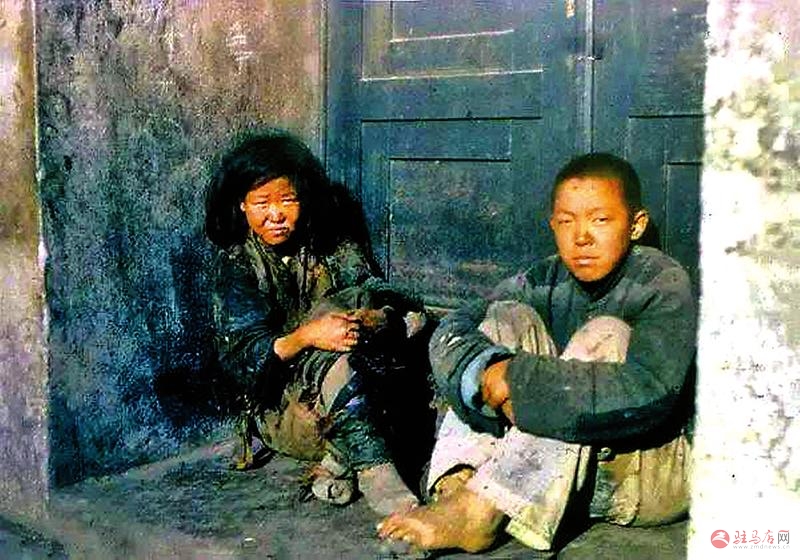 1945年, 上海, 苏州河边蜷缩在大楼门口的流浪儿童。威廉 · 迪柏/摄