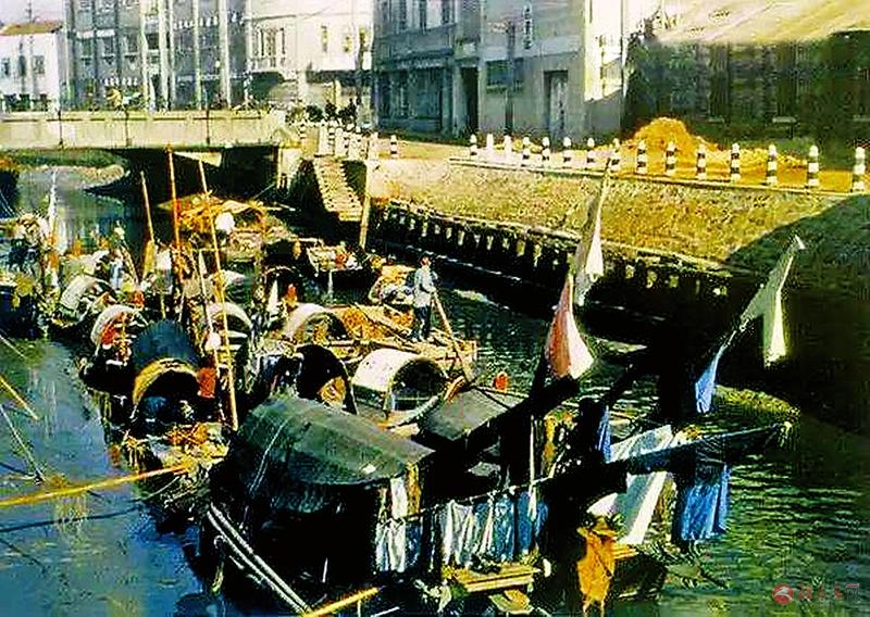 1945年, 上海, 苏州河上渔民的小船。 威廉 · 迪柏/摄