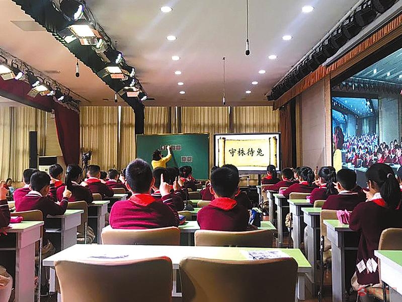 吴永宁老师讲的 《蜘蛛开店》 , 让孩子们体会汉字之美、 语言魅力; 陈岑老师的 《口语交际商量》 一课,让大家明晰了言之有序、 言之有物、 言之有礼的口语交际方法和要领; 赵文威老师的 《司马光》 , 行云流水的教学艺术与雅致诗意的语言风格, 让大家陶醉在一场古典美与现代美的演绎碰撞中; 王娟老师的 《守株待兔》 一课,把寓言这一文体特点诠释得明白透彻。