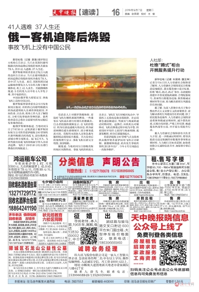 俄一客机迫降后烧毁