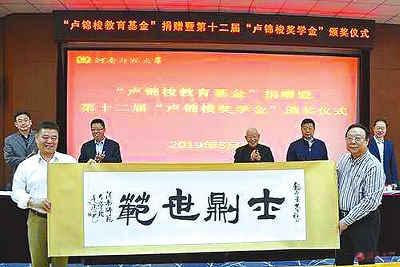 本报讯5月5日上午,河南师范大学隆重举行“卢锦梭教育基金”捐赠暨第十二届“卢锦梭奖学金”发放仪式。“卢锦梭奖学金”创始人、上海交通大学教授、河南枫华种业股份有限公司董事长魏冬青向河师大4名博士研究生和硕士研究生颁发了2018年度奖学金,并捐款1000万元,设立“卢锦梭教育基金”,用于支持河南师范大学教育事业的发展。