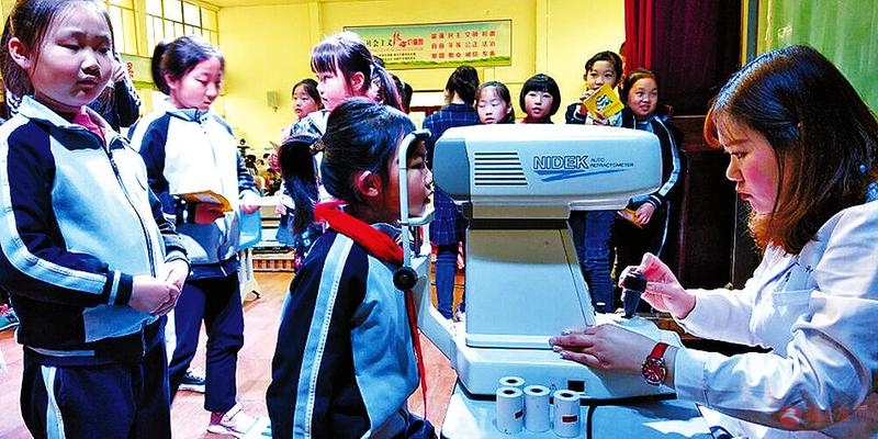 讲座结束后,眼科医生对300多名学生进行了视力、电脑验光等检查,为学生建立眼保健档案。