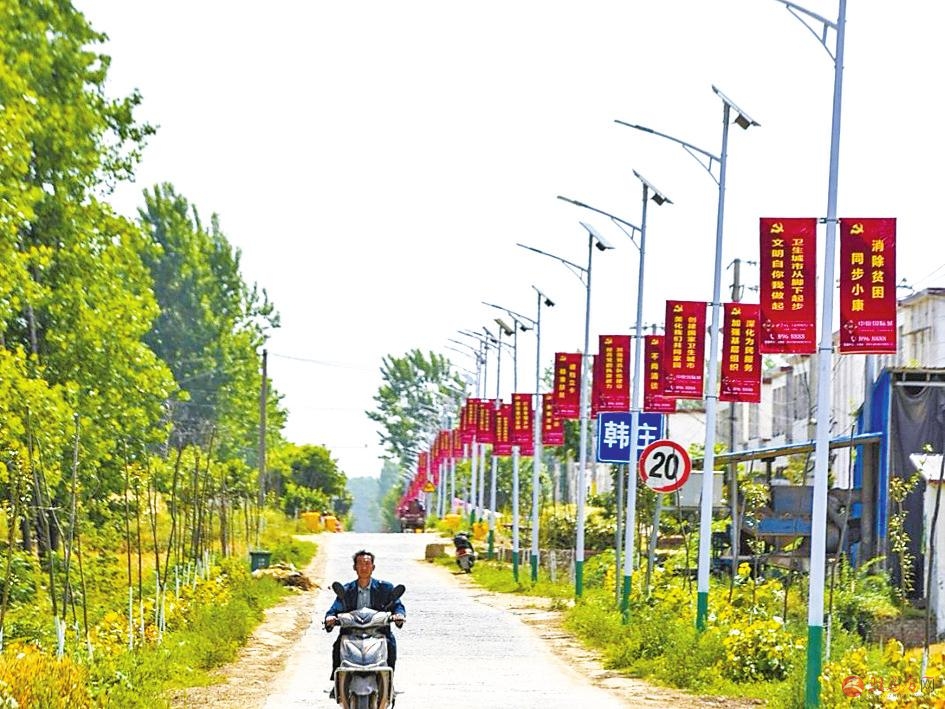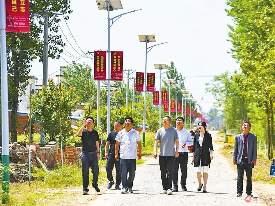 5月27日,记者走进正阳县傅寨乡陶庄村,村道笔直干净,绿树成荫,树荫下最为显眼的是道路两旁一盏盏太阳能路灯(如图)。