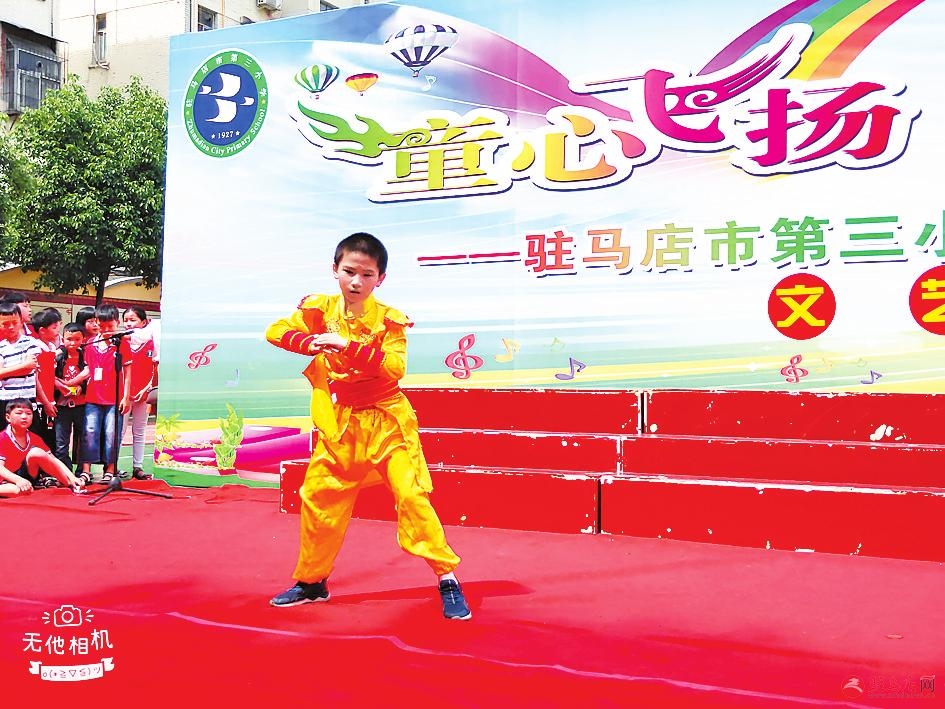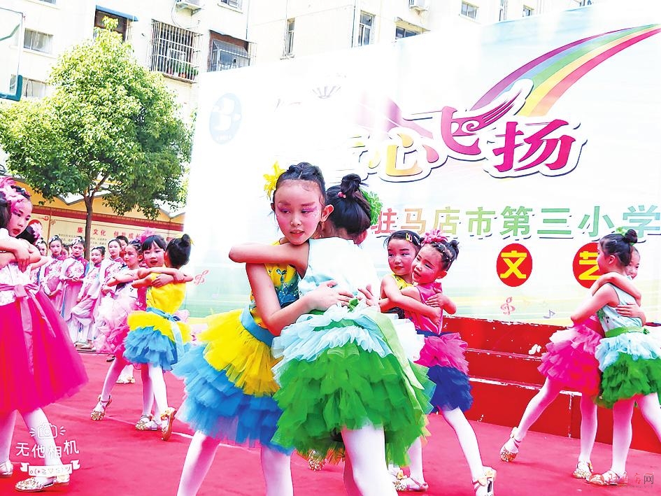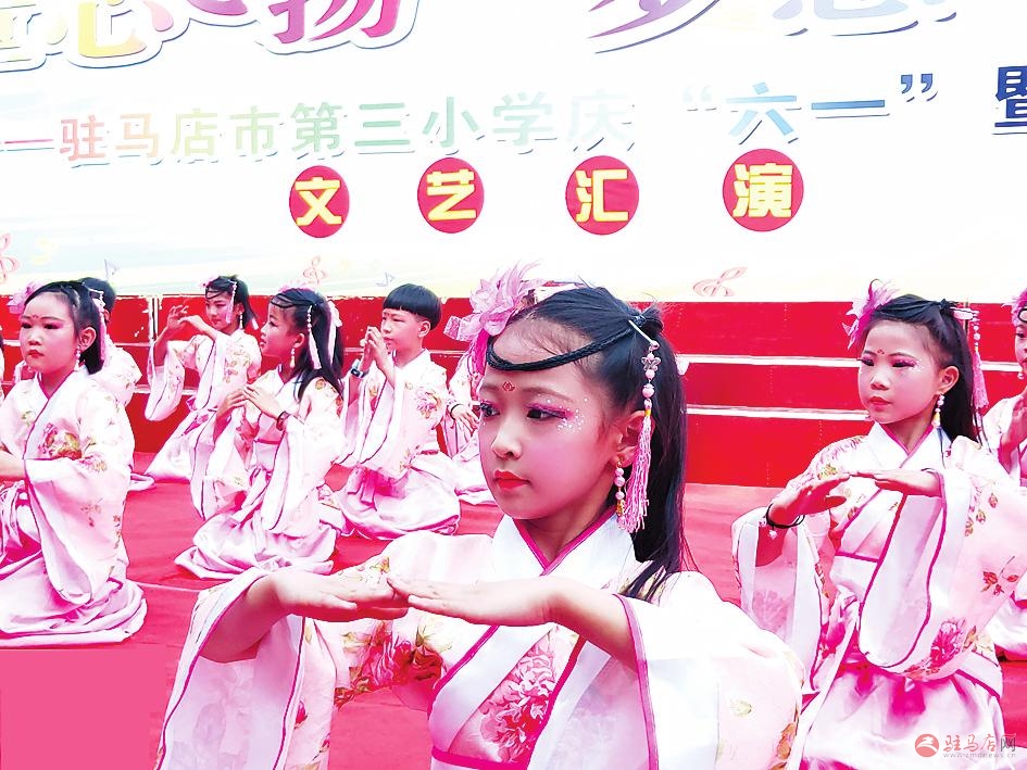 本报讯 5月24日上午,驻马店市第三小学举办了“童心飞扬梦想启航”庆六一文艺会演。学校操场上鼓乐喧天,热闹非凡,孩子们通过丰富多彩的艺术表演形式,展示自我风采,喜迎六一儿童节到来。