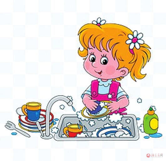 这时,妈妈看见了,说:“你会洗碗了,真了不起。”