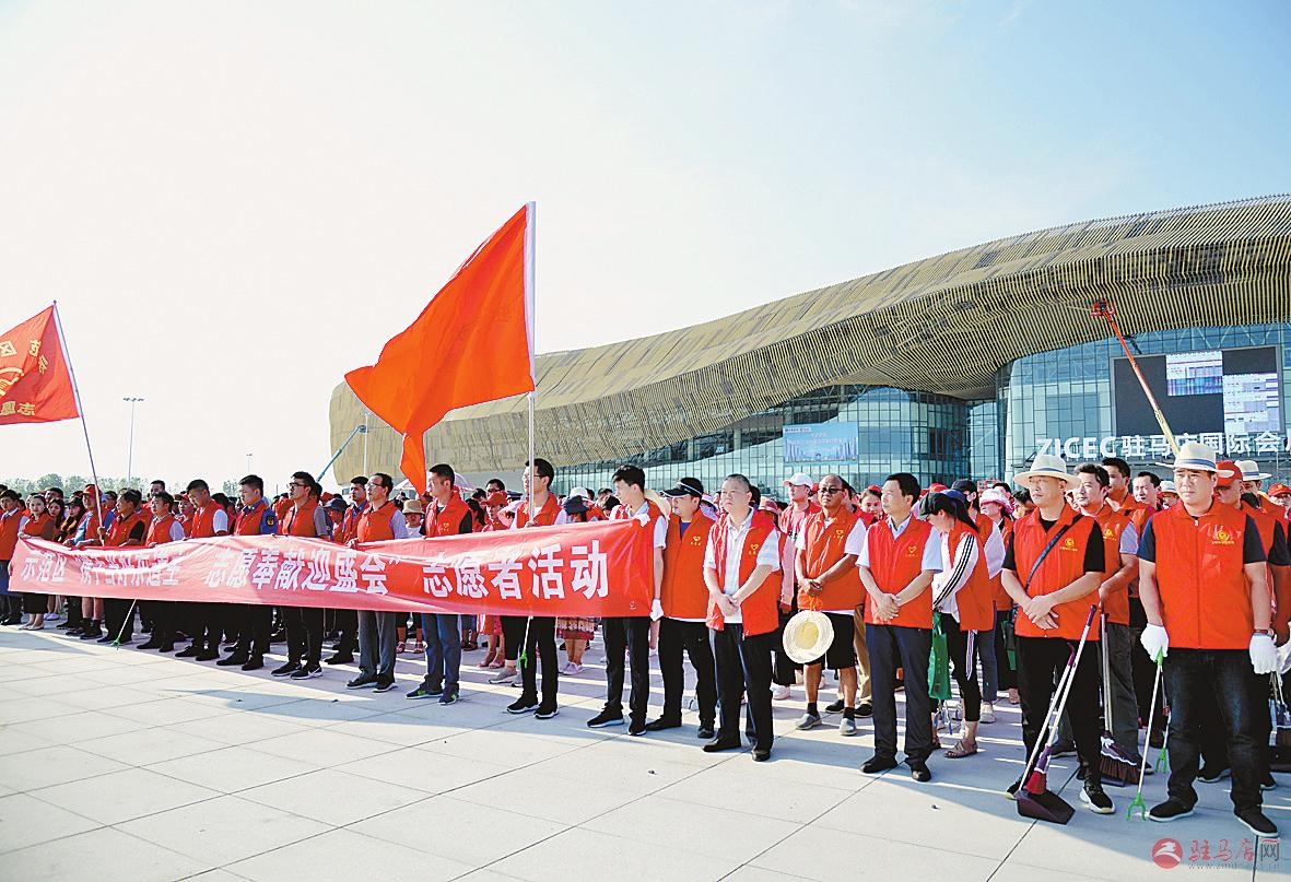 8月25日下午,在驻马店市城乡一体化示范区管委会的精心组织下,示范区区直机关、辖区刘阁街道及企业近500名志愿者身着红马甲,来到驻马店国际会展中心自发捡拾垃圾,清扫广场地面,为即将开幕的第22届“中国农产品加工投洽会”尽一份力。