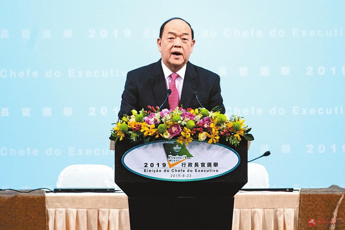 澳门特区第五任行政长官选举25日举行。作为唯一被接纳的候选人,贺一诚以392票高票当选澳门特区第五任行政长官人选。