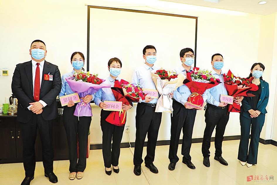 本报讯“向你们学习!向你们致敬!”5月12日是国际护士节,正值市两会召开,省人大代表、河南首善、鹏宇集团总裁朱新红,来到市第二人民医院,看望慰问援鄂五勇士李士龙、何磊、张慧芳、祁博、闵倩,给他们送去鲜花和慰问金,向他们致以美好祝福和崇高敬意。