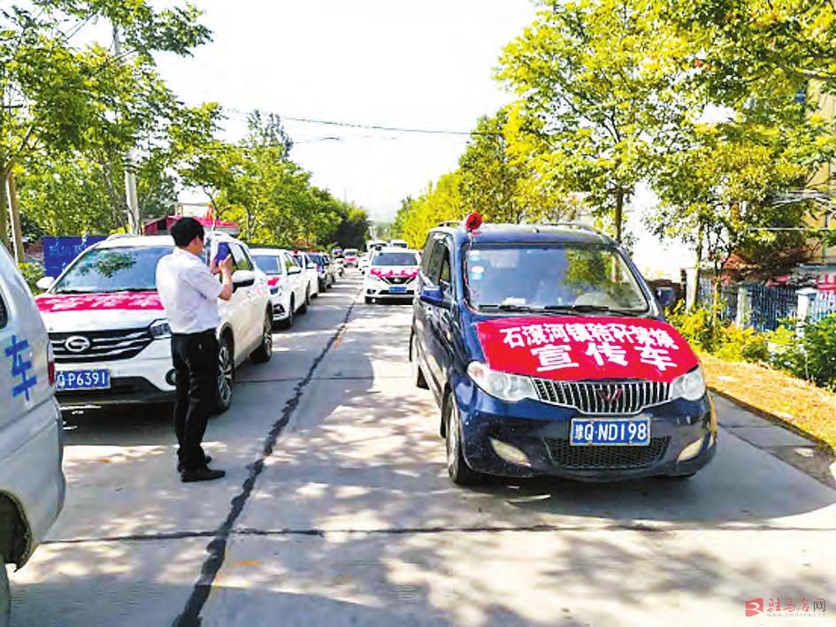 在工作会议推进的同时,石滚河镇政府院内热闹非凡。来自全镇12个行政村的50余辆秸秆禁烧宣传车个个身披红色宣传条幅,加大宣传,扩大声势,营造上下联动、全民参与的“三夏”生产氛围(如图)。