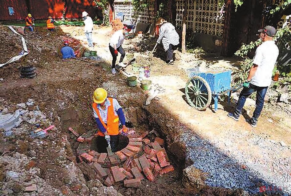 6月15日上午10时许,记者来到驿城新村小区,看到工人们正在有序地搬运材料、砌墙抹灰,小型雾炮车在小区内往来穿梭作业……小区改造项目施工现场一片繁忙景象。