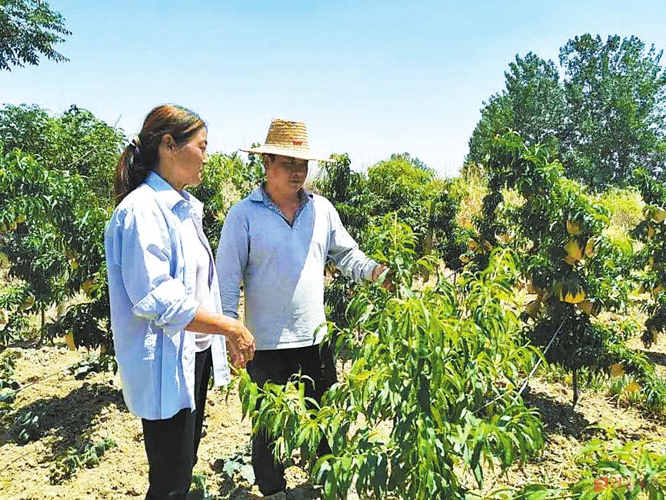 本报讯(文/图全媒体记者高琳琳)“给大家介绍一下,这个桃属于冬桃,它的开花结果和早熟桃是一样的,也是春天开花结果。它的特点是天热以后就不长了,等天冷以后,就是昼夜温差大了以后,它才开始长个儿。它从挂果到成熟期长达6个月,口感脆甜。”正在介绍冬桃的人叫常中立,胡庙乡东口村人。记者见到他的时候,他正在驿城区胡庙乡韦岗村贫困户袁华国的桃园里查看冬桃长势,并进行技术指导(如图)。