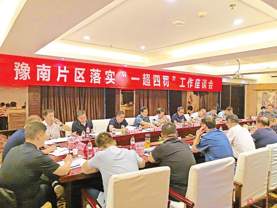 本报讯(文/图全媒体记者刘金霞)6月24日上午,豫南片区落实“一超四罚”工作座谈会在我市召开,对违法超限超载的,全省各地市将严格落实“一超四罚”制度。