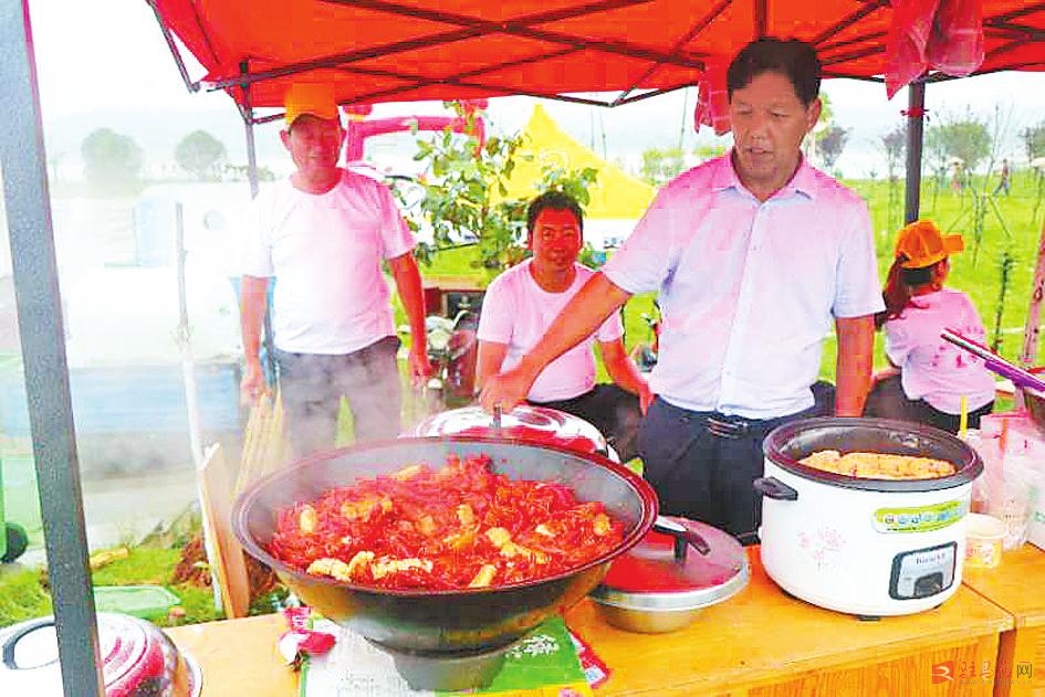 如今,美食节已成为各村展示产业发展成果的平台。作为拥有万亩养殖基地和注册了“淮渔源”龙虾商标认证的水产养殖大镇,每一个摊位上都能看到小龙虾的身影,蒜香、五香、麻辣……美食节上,龙虾香味四溢。在唐庄村的摊位上,该村党支部书记唐留生掌勺烹制。他向记者介绍,村里水产养殖扶贫基地养殖的不光有小龙虾,还有个头肥大的澳洲龙虾。一天下来,唐留生摊前烹制的龙虾售卖殆尽,刚从塘中捕捞的龙虾也卖出不少,为村里的集体经济和贫困群众增加了收入。