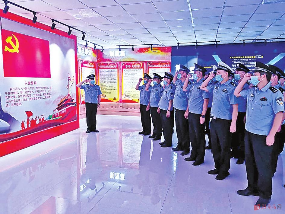 本报讯(全媒体记者高琳琳通讯员袁志刚)为深入开展正风肃纪规范执法集中教育活动,进一步增强党员干警廉洁自律意识,筑牢拒腐防变思想道德防线,近日,驻马店市公安局金桥派出所组织党员干警30余人,来到市公安局警示教育基地参观学习,实地接受警示教育,重温入党誓词(如图),以这种教育方式纪念中国共产党成立99周年。