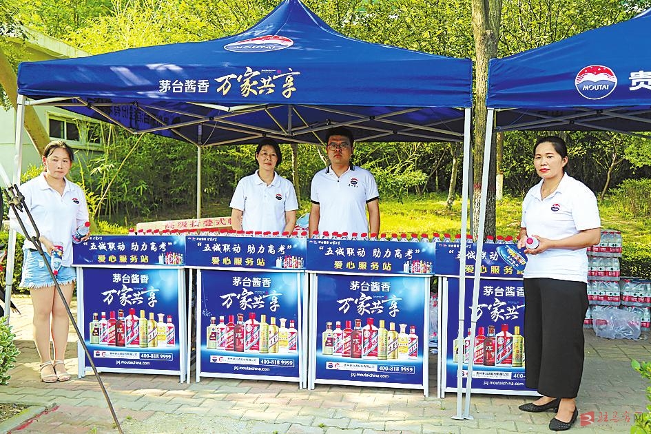 助力高考,企业义不容辞。7月7日,在我市部分高考考点外,市华通源供应链管理有限公司联合贵州茅台酱香酒营销有限公司开展爱心助考活动。该公司设置服务点,免费提供纯净水、小扇子等,为考生和在外等待的家长提供服务,受到广大考生及家长的好评。