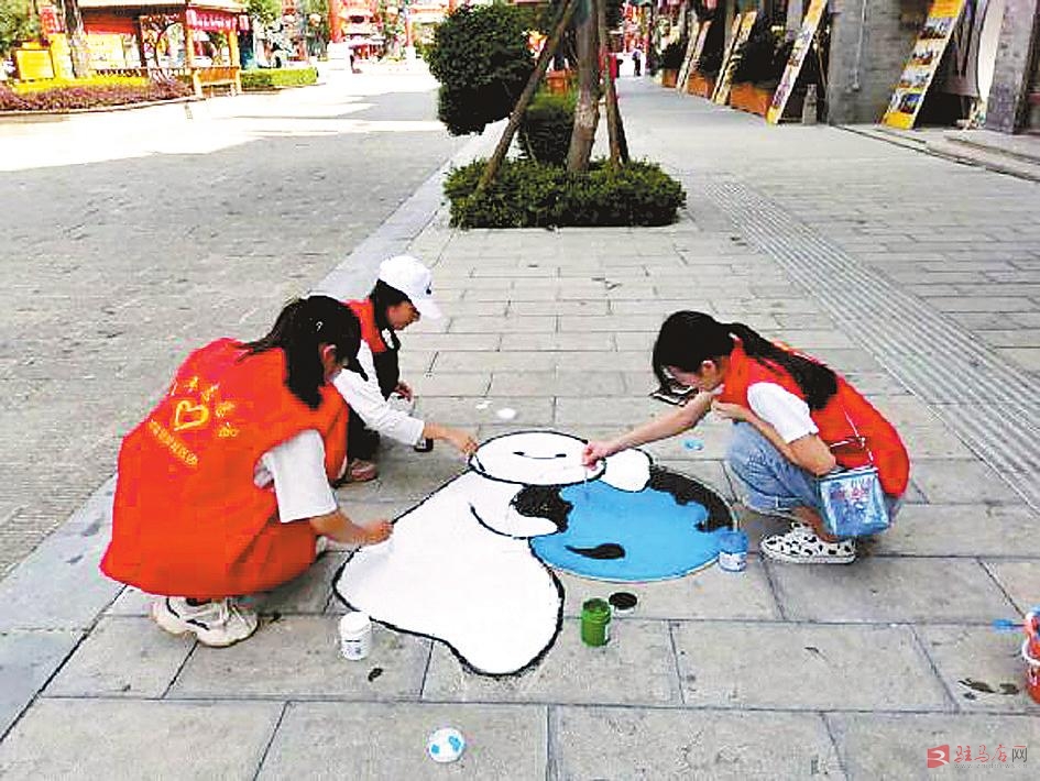 本报讯(文/图全媒体记者高琳琳)说起窨井盖,你会想到什么?道路上不起眼的沉默者,简单粗犷的外表,被人踩在脚下。但这次,它们成为主角,展现了一场有趣的“时装秀”,成为市区里和景区内一道亮丽的风景。近日,为深入推进全国文明城市创建工作,积极营造全民参与创建的浓厚氛围,共青团驿城区委组织近30名“翼展计划”大学生志愿者走进皇家驿站,开展了以“挥洒青春色彩手绘文明驿城”为主题的青春涂鸦活动。