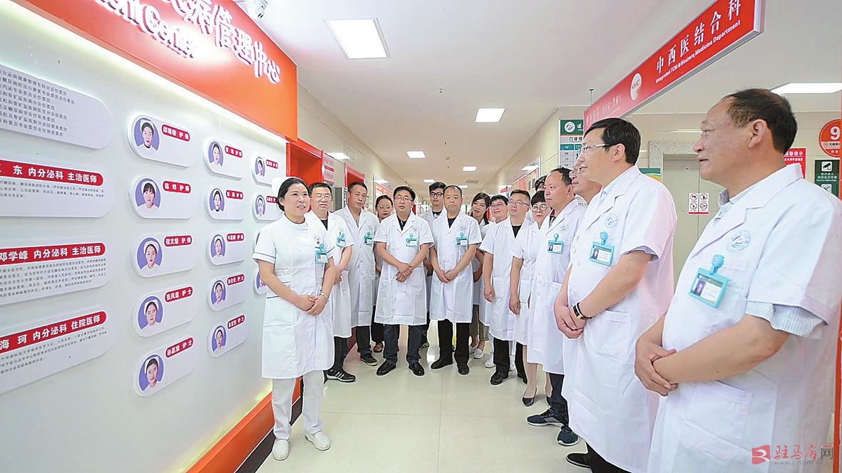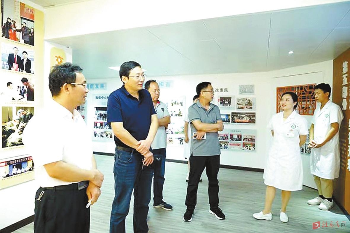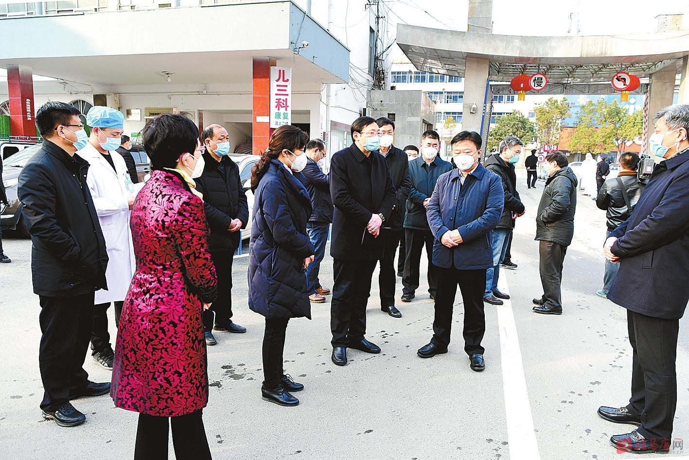 市委书记陈星(前排右一)到遂平县人民医院指导疫情防控工作。