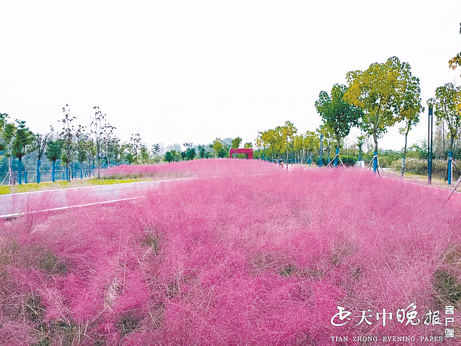 近日,汝南县城南海大道与汝河西路交会处,有一大片盛开的粉黛乱子草,如云似雾,美不胜收。