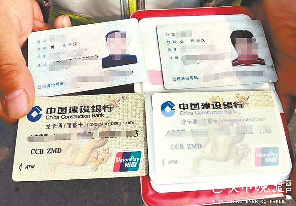 据了解,邢黎辉捡到钱包后,发现钱包内有两张身份证和两张银行卡(如图),邢黎辉觉得身份证对失主非常重要,就将情况上报中队。通过中队长张文斌的协助,邢黎辉与失主女儿取得联系。