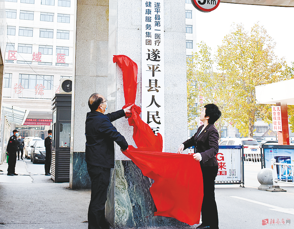 本报讯(文/图 全媒体记者 王捷)11月13日上午,遂平县第一医疗健康服务集团遂平县人民医院揭牌仪式举行(如图)。