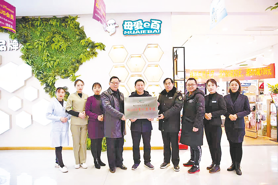 “母爱e百CBD旗舰店”喜领“放心消费示范单位”牌匾。