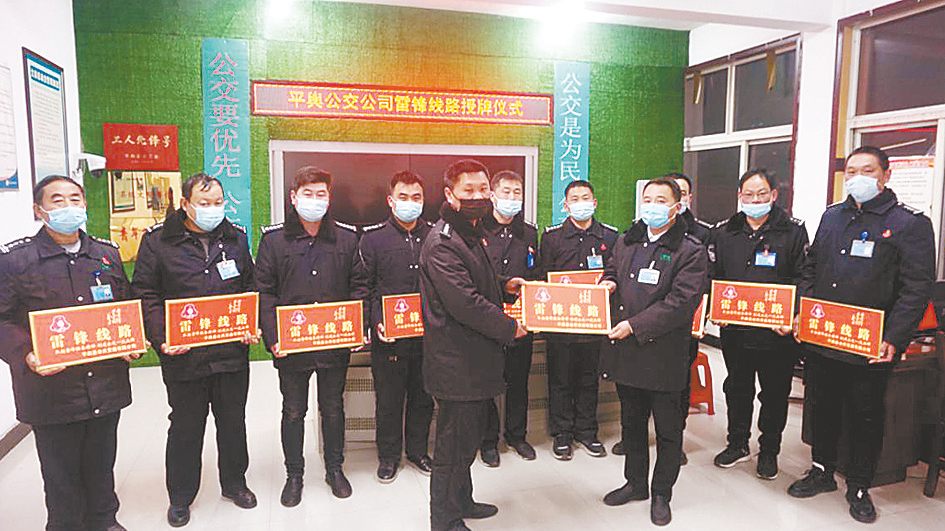 本报讯(文/图 全媒体记者 刘金霞 通讯员 戚阿东)为进一步弘扬新时代雷锋精神,提高公交服务水平,市公交公司平舆分公司将5路确认为“雷锋示范线路”,于1月4日在县交通局5楼办公室举行了授牌仪式(如图)。