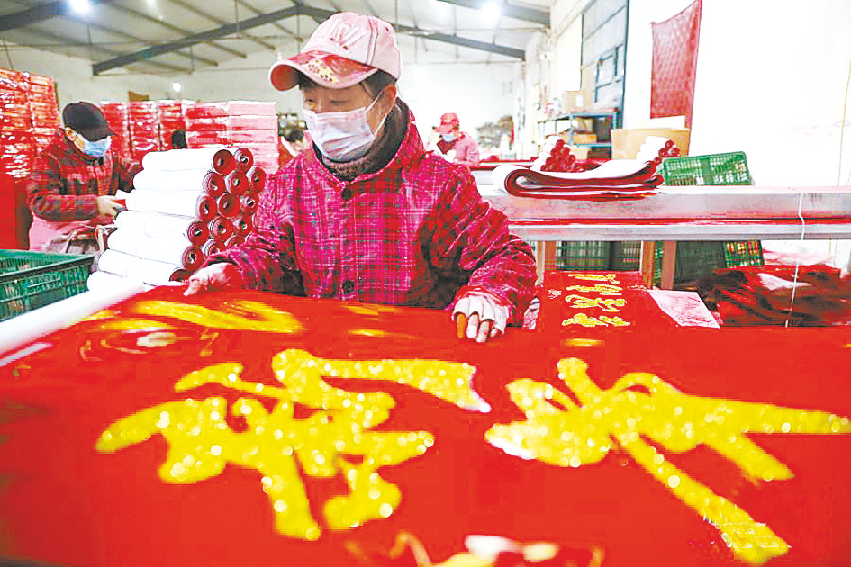 近期,河南省温县赵堡镇赵堡村的春联印刷车间一派繁忙景象。村民们忙着印刷、包装春联,供应各地年节市场。赵堡村是当地远近闻名的春联印制专业村,村民通过从事相关产品的生产增收致富。 新华社发
