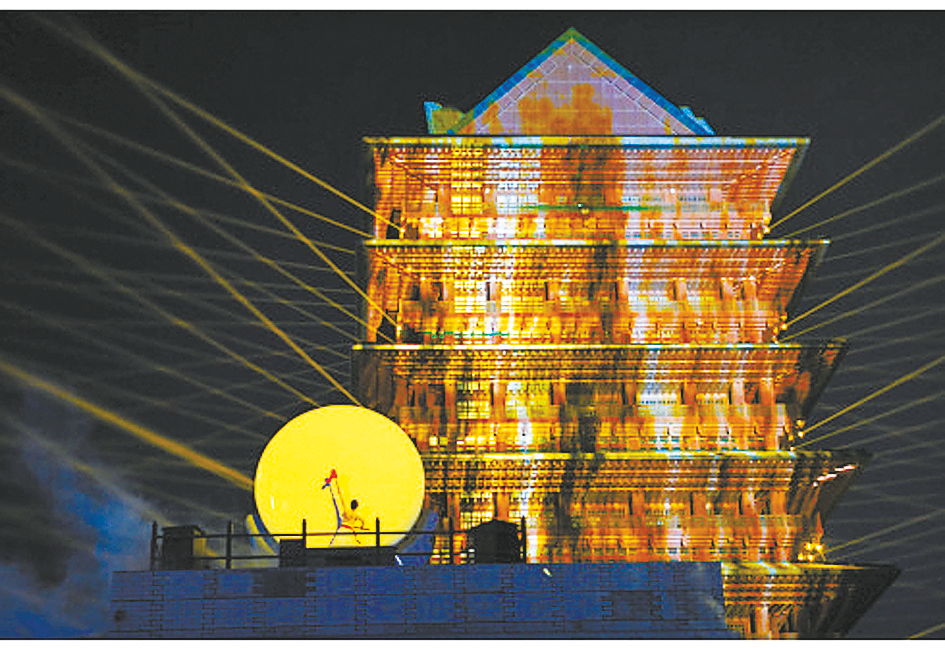 日前,位于甘肃省兰州市七里河区的兰州黄河楼景区上演《大有兰州》光影秀,表演分为“源之大河”“金之大城”“民之大韵”“兰之大州”四个主题篇章,让游客在黄河之滨感悟黄河文化。