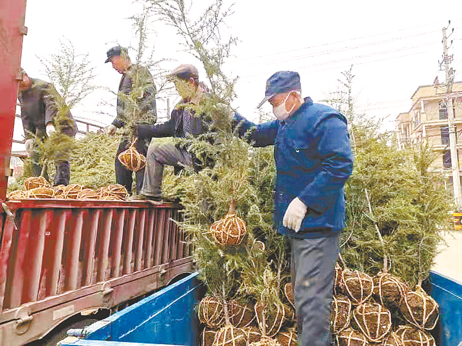 本报讯(文/图 全媒体记者 邓丹华 通讯员 杨明华 周志恒)1月14日,汝南县常兴镇马屯村万亩雪松基地一派热火朝天的繁忙景象,十几辆大货车在排队等候装车。工人们将雪松、冬青等苗木逐一清点、打捆、吊装,忙碌而有序。