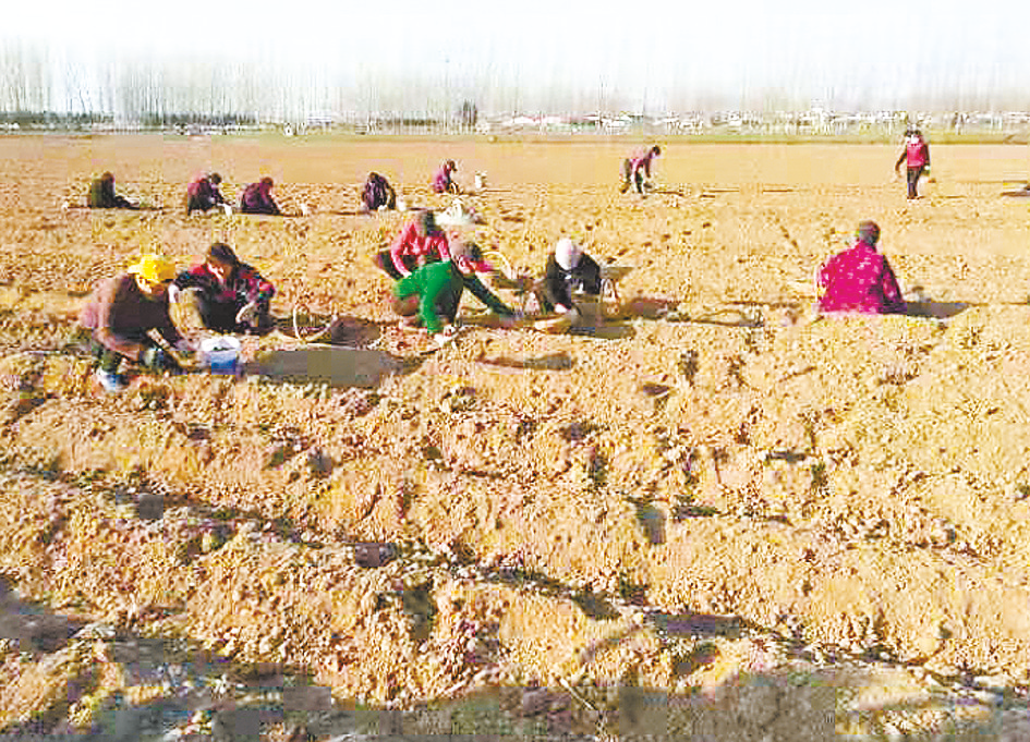 1月15日,冬日暖阳下,西平县焦庄乡席王寨村的田地里一片繁忙,村民们正在中药材种植基地栽种白芷。
