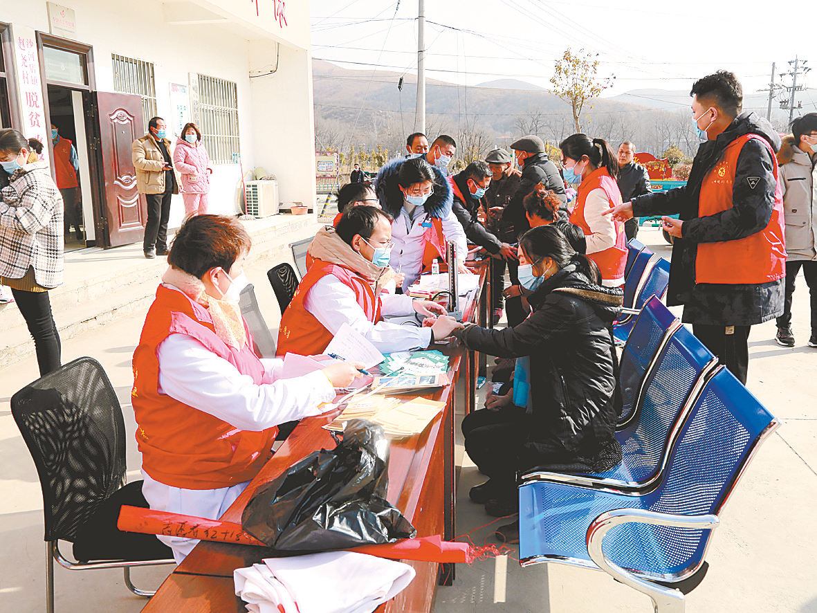 义诊现场,前来参加健康咨询和身体检查的村民络绎不绝。市中医院医疗专家耐心细致地为群众测量血压、血糖,宣传健康知识和防疫措施,并提供诊疗意见、预防保健、健康咨询服务(如图)。对于行动不便的重症患者,医疗专家组成医疗队入户义诊,耐心查看患者病情,现场会诊,提出诊疗意见,并向患者家属传授护理方法,受到广大村民的一致好评。