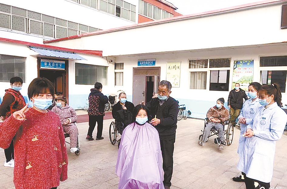 下午3时,盘师傅耐心、认真地按照每一位患者的要求,为他们剪出最“帅气”的发型,娴熟的手法得到了患者们的称赞。