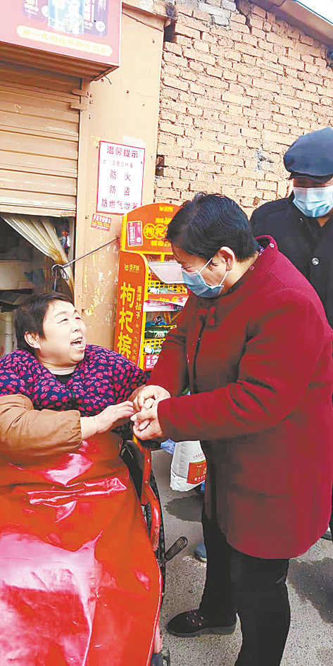 本报讯(文/图 全媒体记者 王永良)“高老师,你现在的身体还好吗?需要什么告诉我啊,我和我老伴会帮助你解决。”2月1日上午,驻马店好人潘永锋、涂善珍老两口购买米、面、油等生活用品,在双节到来之际,对驻马店市林栖园小区6户困难职工、残疾人家庭进行慰问,鼓励他们克服困难,勇敢面对生活。