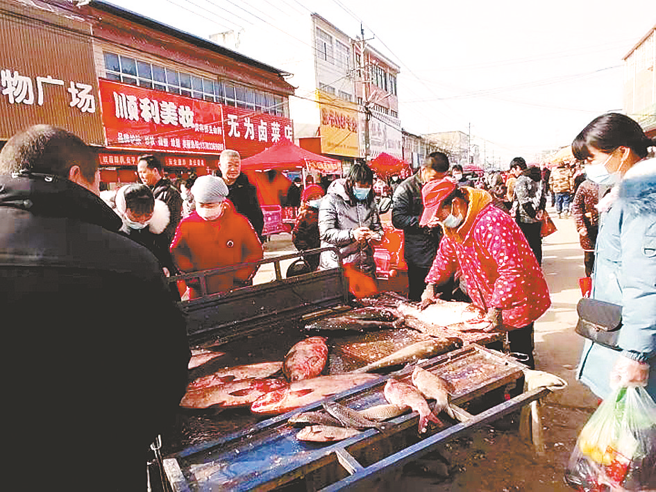 昨日,该县同中镇集贸市场里人声鼎沸。一个卖鱼的摊位前挤满了人,五六斤的大鱼每斤5元,女老板又刮鱼鳞又称重,忙个不停。一旁卖猪肉的老板在忙着挥刀砍肉,生意火爆。新鲜的葱蒜辣姜、萝卜白菜等很受欢迎。而当地的豆腐、人造肉、蘑菇、金针菇等土特产更是抢手货,引来不少消费者竞相购买。火红的灯笼年画当然是人们喜迎春节必不可少的吉祥物……