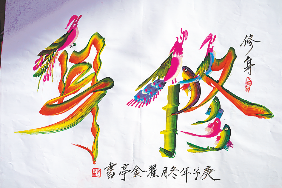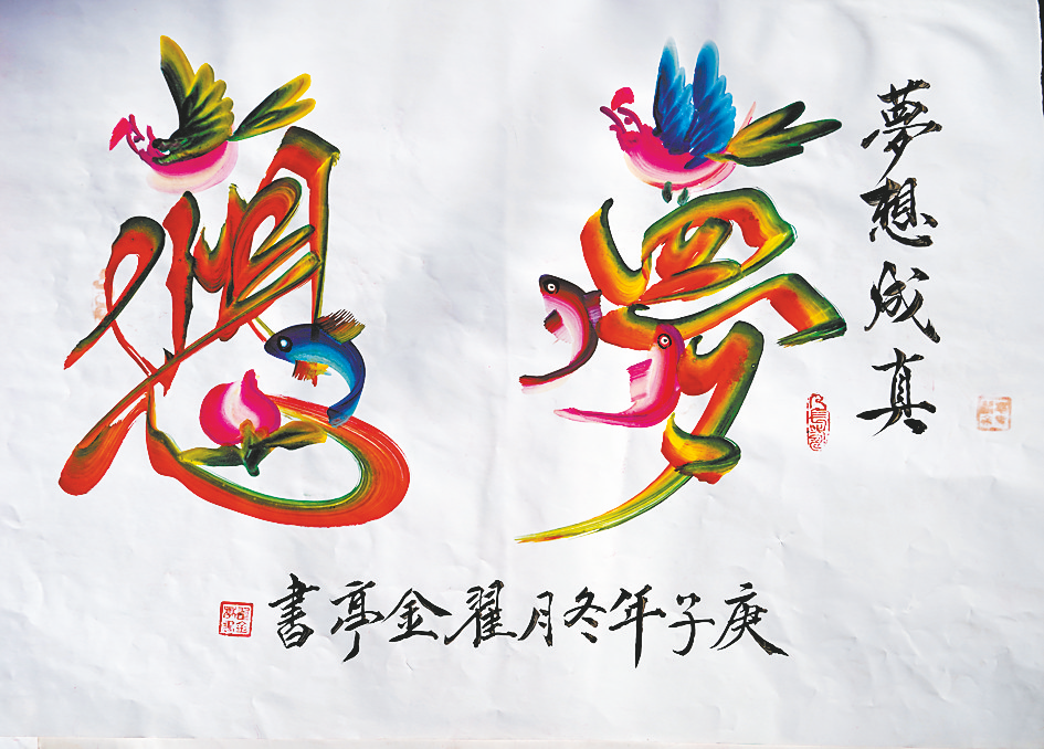 一个出自木匠世家,用于家具油漆纹饰的艺术形式,推陈出新成为新时代书法与绘画完美结合的艺术作品,其历史渊源深远,作品深受省内外有识之士的厚爱与赞赏。