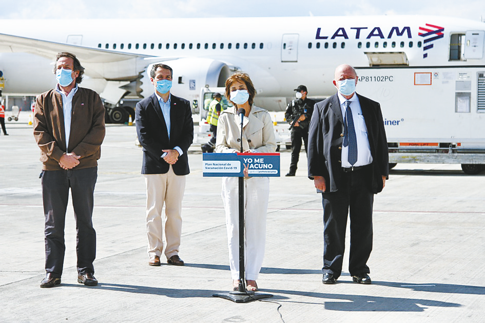 第二批中国科兴公司生产的新冠疫苗1月31日运抵智利首都圣地亚哥国际机场。智利卫生部、外交部官员赴机场迎接这批疫苗。 新华社发