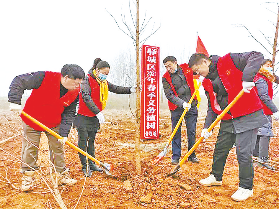 驿城区举行2021年春季义务植树活动