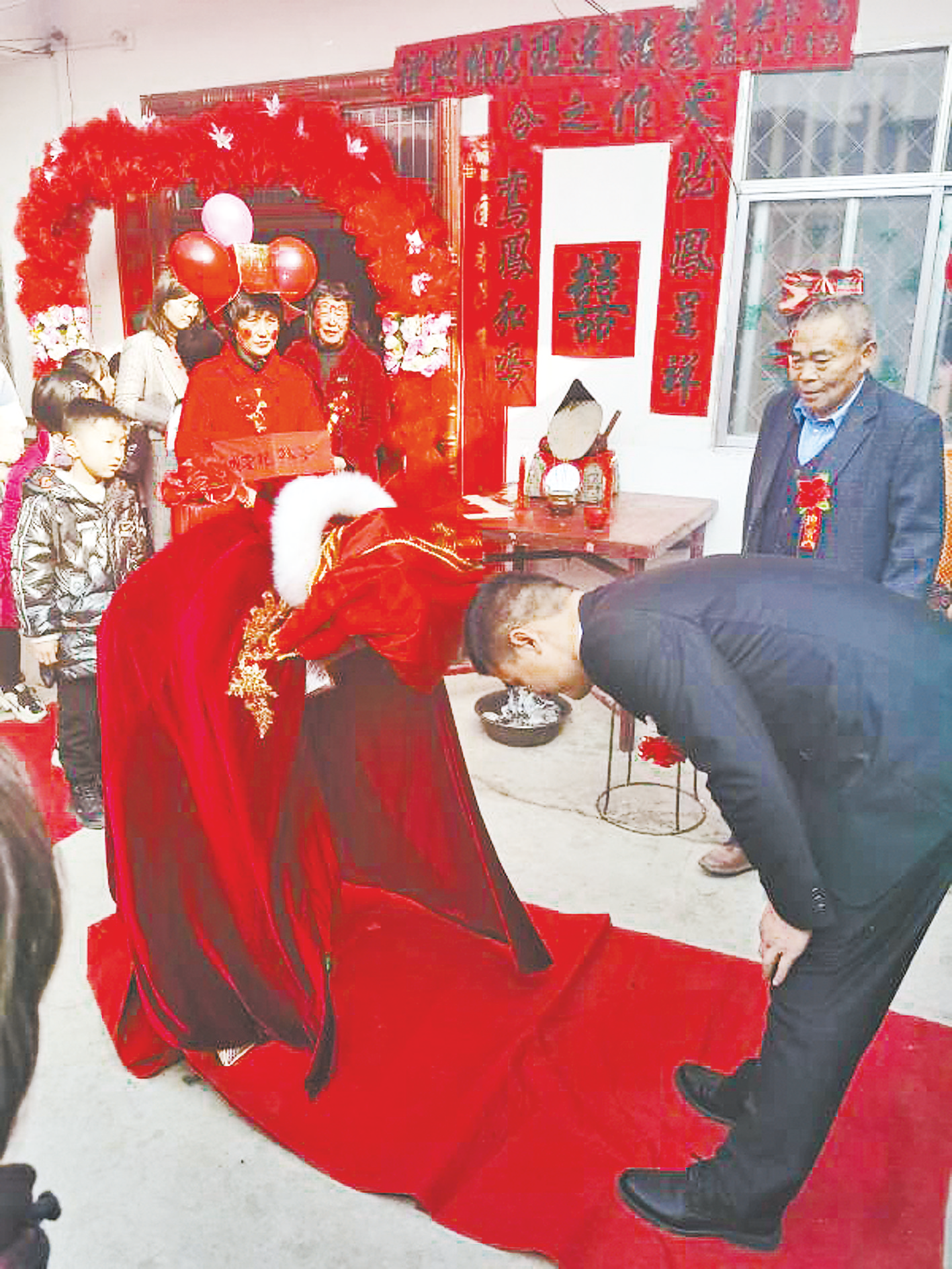 良辰吉日,8人抬的花轿、媒婆引道、鸣锣开道……这场喜气洋洋的中式婚礼在冯湾村引来数百人观看。当天是二月二龙抬头,村民冯海云的儿子举办婚礼,与千篇一律的车队相比,抬轿娶媳妇的迎亲队伍更有特色。