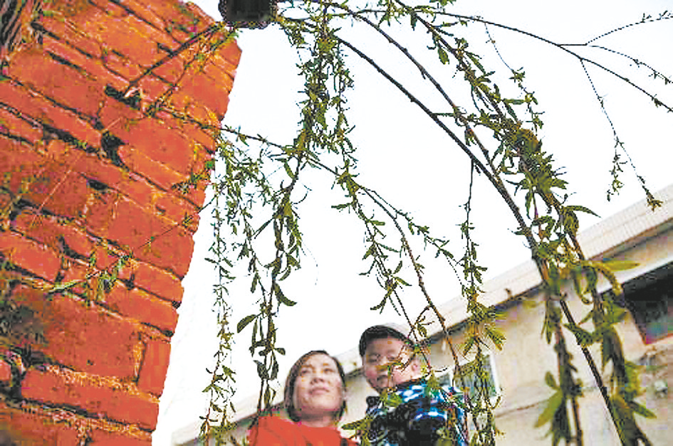 清明时节插柳习俗。