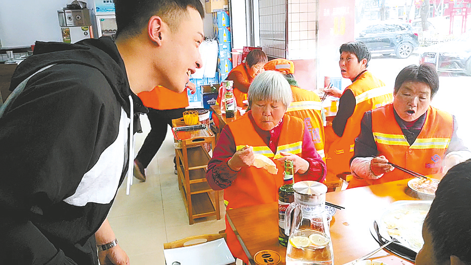 “有一天晚上下雨,我看到环卫工人还在弯着腰打扫街道,非常心疼。”老板牛鑫说起这次献爱心的初衷:“职业不分高低贵贱,环卫工人为我们的城市付出了很多,我请他们吃饭,就是为了让他们感受到社会对他们的尊重。刚好,我4天前结婚了,这个时候做一场公益活动,很有意义。”