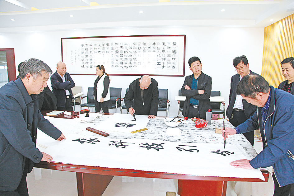 近日,驻马店市书画艺术研究会的书法家应邀走进遂平县领鑫农业科技有限公司,现场创作书法作品,交流创作心得。