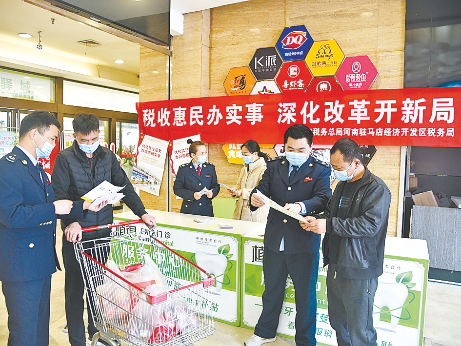 本报讯(文/图 全媒体记者 袁敏 通讯员 孙亚杰)为深入普及宣传税法知识,近日,开发区税务局以“税收惠民办实事 深化改革开新局”为主题,开展了税法宣传进社区、进商超、进市场活动。