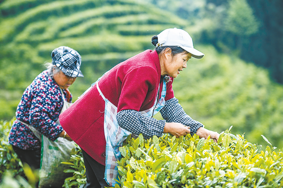 4月20日,茶农在贵州省六盘水市六枝特区落别乡鸿森茶场采摘“谷雨茶”。