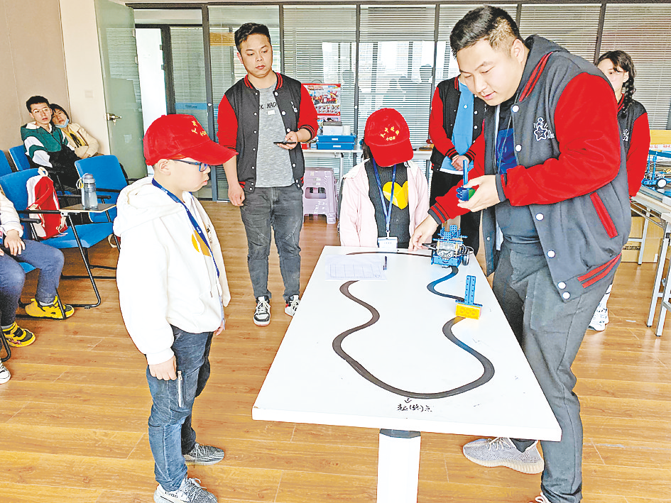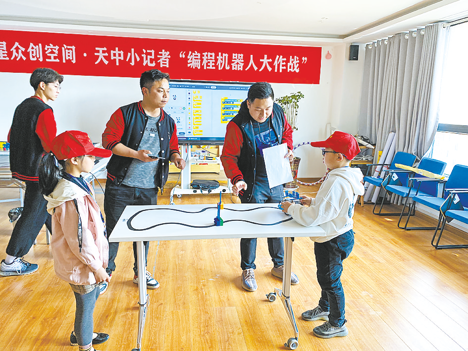 本报讯(文/图 全媒体记者杨丽) 4月18日下午,天中晚报小记者部联合驻马店市北极星众创空间开展“走进人工智能时代——编程机器人大作战”活动。小记者感受人工智能,和机器人“交朋友”。
