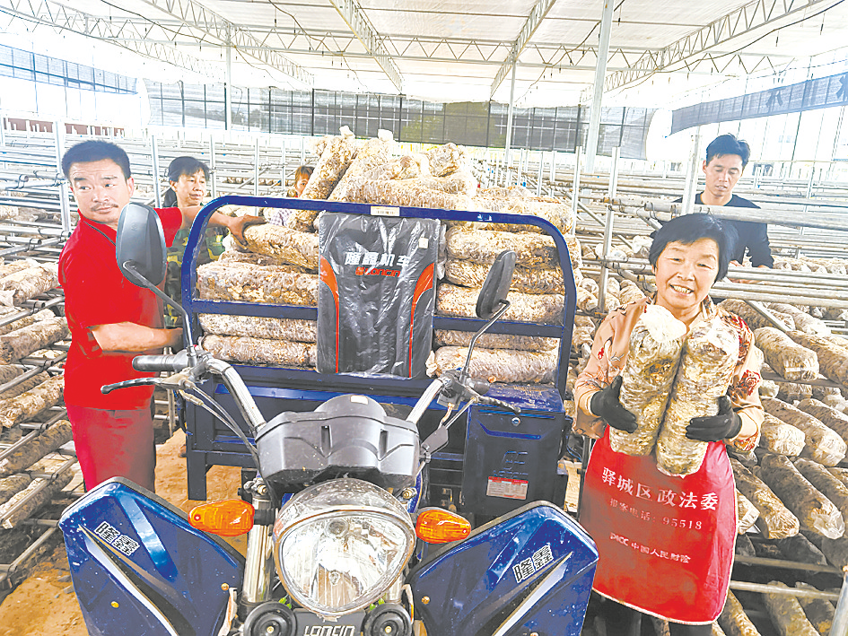 5月27日,驿城区老河乡九合香菇种植基地一派繁忙景象:工人们正忙着把菌棒运送至菌棚内,并将菌棒整齐摆放在菌架上。他们有的传递,有的摆放,忙得不亦乐乎。